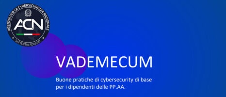 ACN – Agenzia per la Cybersicurezza Nazionale – ha appena pubblicato un Vademecum destinato ai dipendenti delle PPAA italiane con l’obiettivo di sensibilizzare sulle buone pratiche che ogni utente deve adottare per migliorare la sicurezza delle Istituzioni.