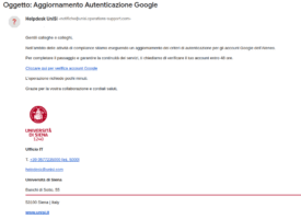 [IRT@UniSI] Segnalazione nuova campagna phishing “Aggiornamento Autenticazione Google”