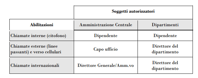 - Eventuali abilitazioni richieste (solo chiamate interne/chiamate nazionali e cellulari/chiamate internazionali) secondo il procedimento autorizzativo sopra indicato;